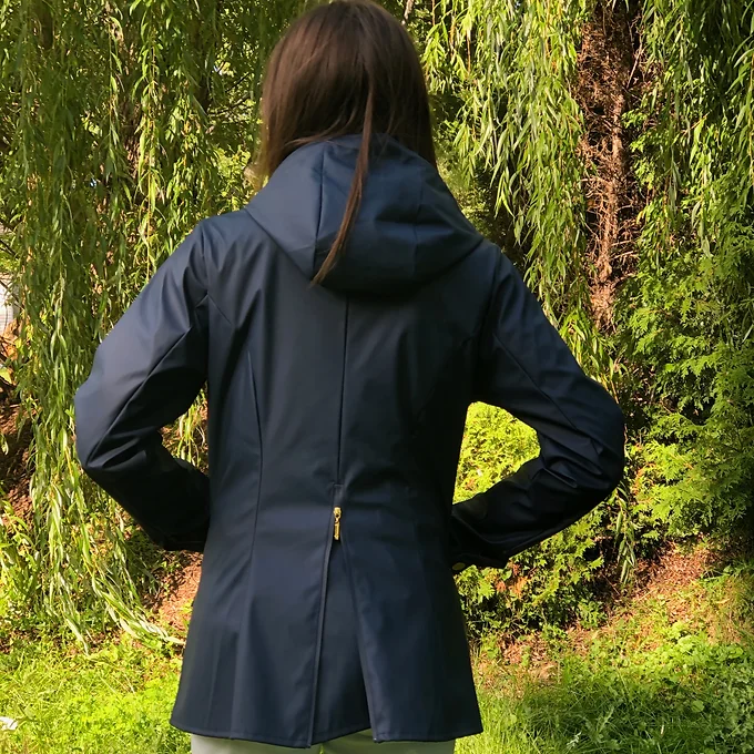 Fait d’un tissu léger et imperméable, il est muni d’un capuchon du même matériel. Le zip arrière vous permettra de monter à cheval sous la pluie sans restreindre vos mouvements.